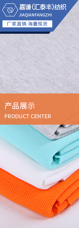平紋布:各類拉架平紋、普通平紋、花式平紋,面料紋路清晰、光澤好,成分包括100C、100T、100N、T/C、CVC、N/C、N/T、MODAL、TENCEL、ROYAN、BAMBOO等,適宜合類休閑、運動、時尚、商務(wù)及內(nèi)衣類服飾.<br /> 珠地布:各類單雙珠、六角、斜紋珠地,珠眼飽滿、顆粒清晰,伸縮保形性好,吸濕、透氣,可兼做抗紫外、吸濕導(dǎo)汗、香味等功能,適宜各類休閑、商務(wù)、運動類T恤.<br /> 健康布:組織精密、紋路清晰、手感爽滑立挺,膚感強(qiáng),適宜各類運動、休閑、時尚類服裝,成分包括100C、100T、T/C、CVC、C/R等.<br /> 衛(wèi)衣布:各類單、雙衛(wèi)衣,拉架衛(wèi)衣,布面肌理豐富,耳仔整齊,立體飽滿,有良好的吸濕透氣及保暖功能.<br /> 不倒絨:保暖、透氣,不起球、不掉毛,適宜合類休閑套裝,情侶、新套裝、保暖內(nèi)衣.<br /> 橫機(jī)面料:11、22及提花類,用于各類領(lǐng)袖及下欄配套.<br/>